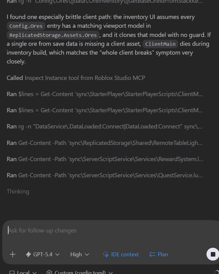 I made codex do a big refactor to oredata, and now my game is silently stopping execution somewhere, randomly too. Atp I may just revert the entire refactor.